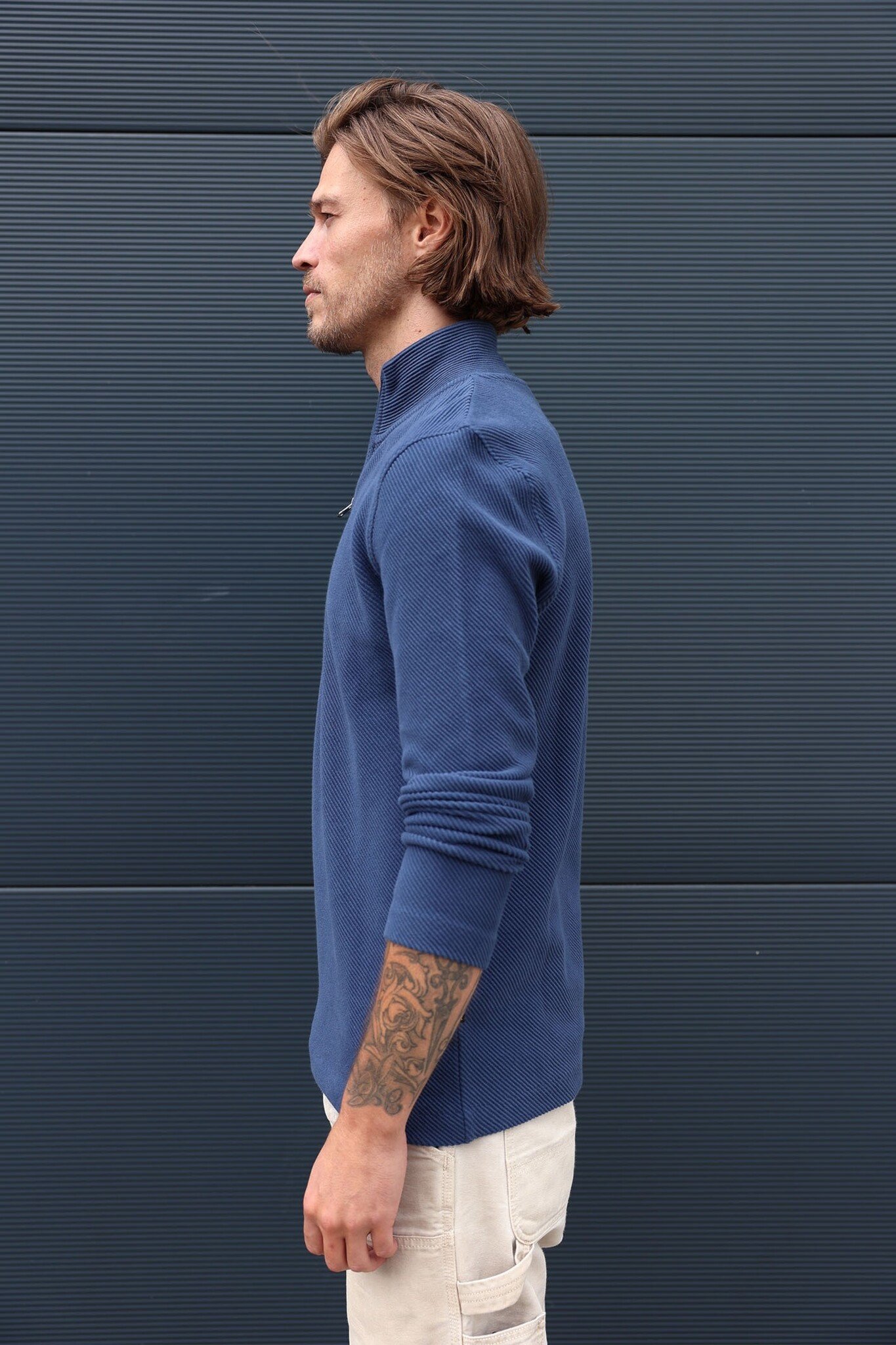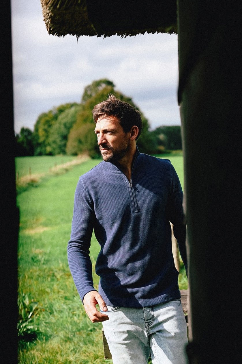 Ontdek de Half Zip Trui KN Oblique Insignia Blue van Kultivate. Stijlvol, comfortabel en veelzijdig. Perfect voor elke gelegenheid. Voeg deze must-have toe aan je garderobe!