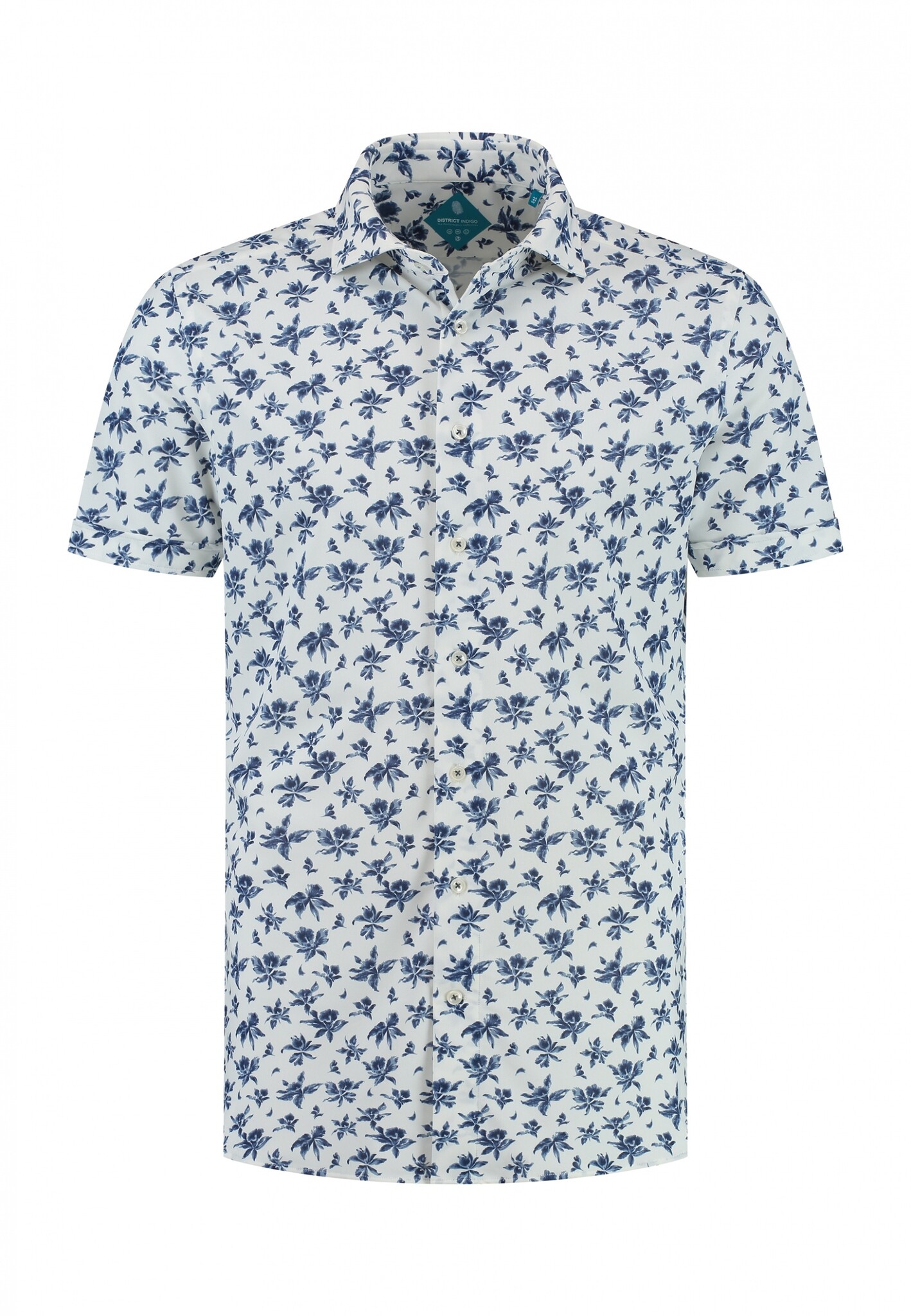District Indigo Korte Mouw Overhemd Pique Performance Print Wit (7.41.029.716 - 307)