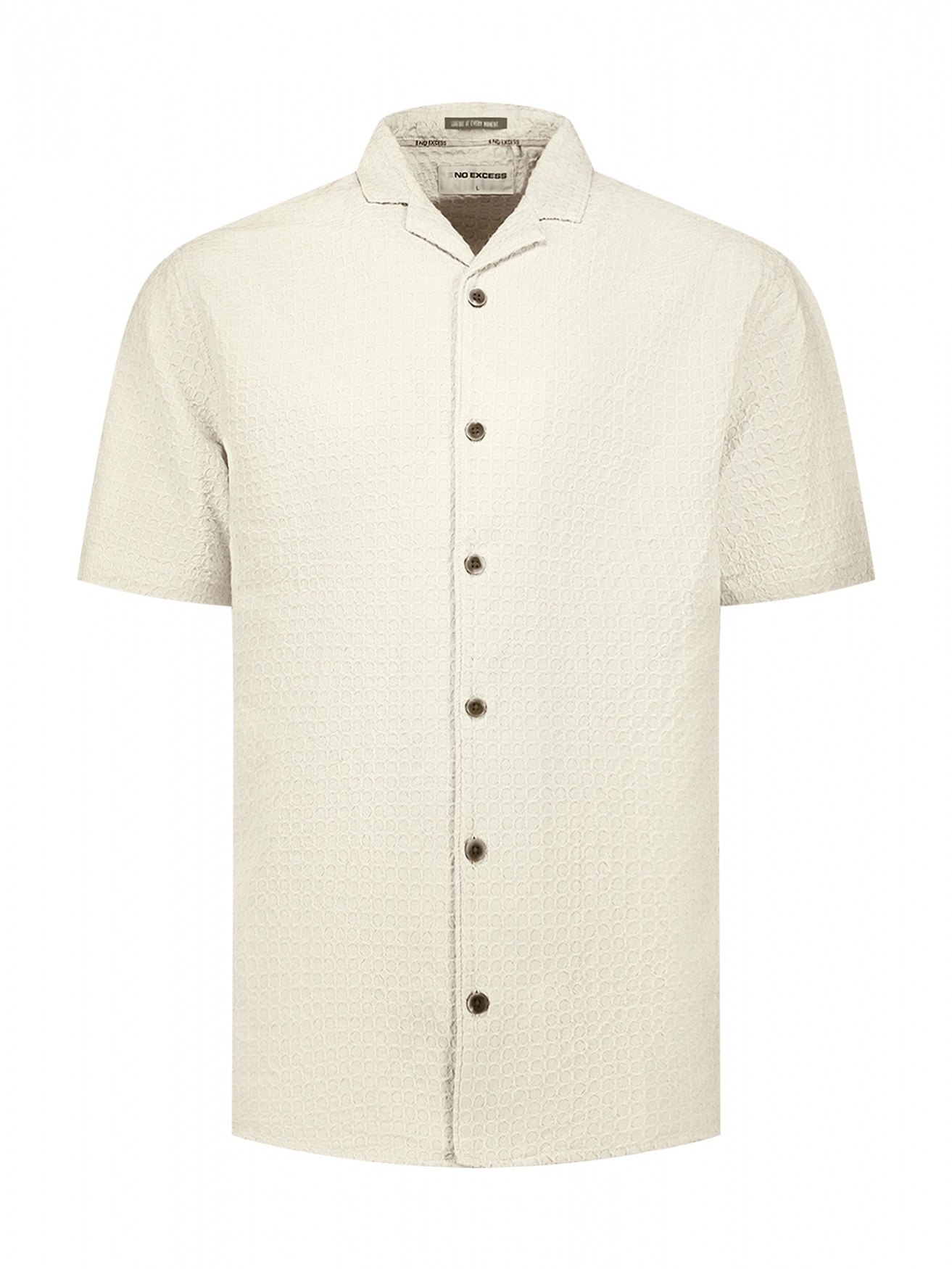 Upgrade je stijl met het No Excess Korte Mouw Overhemd Jacquard Uni Dessert. Dit veelzijdige, beige overhemd combineert comfort en elegantie voor elke gelegenheid. Bestel nu!