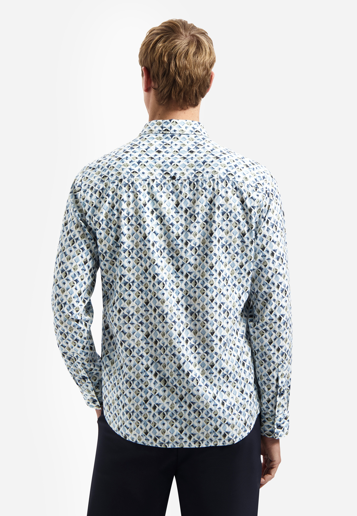 Stel je voor dat je een outfit samenstelt voor een avond die van casual naar chic beweegt: dit overhemd vormt de kern van die overgang. De allover print geeft een subtiele dynamiek die je look direct visueel interessanter maakt, zonder dat het afleidt van je persoonlijke stijl. Combineer het met een scherp colbert voor een nette uitstraling of draag het open over een effen T-shirt voor een relaxte, stedelijke look. In elke combinatie blijft het overhemd trouw aan zijn rol als stijlmaker voor de moderne man.