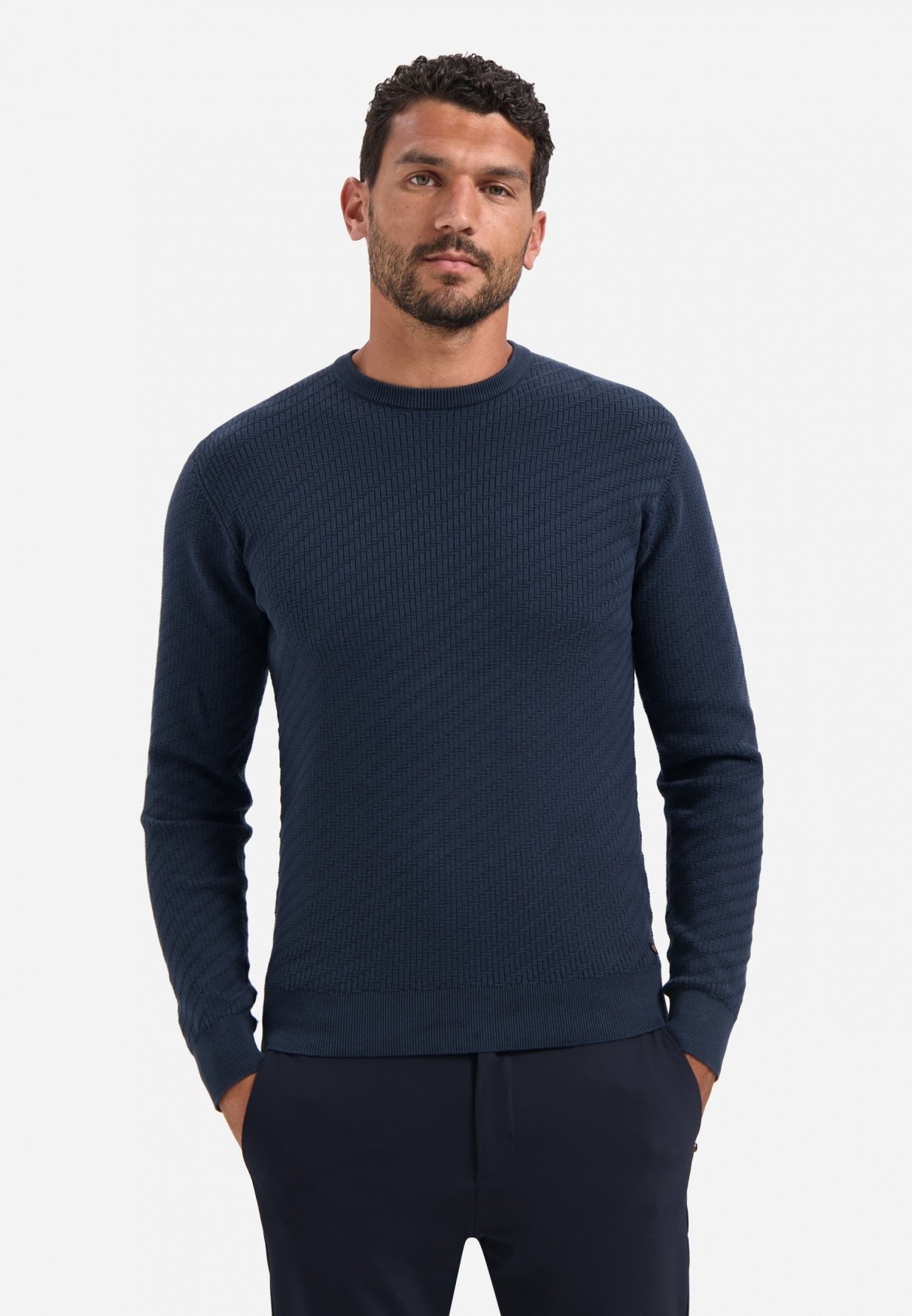 Ontdek de Tijdloze Stijl van de No Excess Pullover Crewneck Jacquard Solid Night