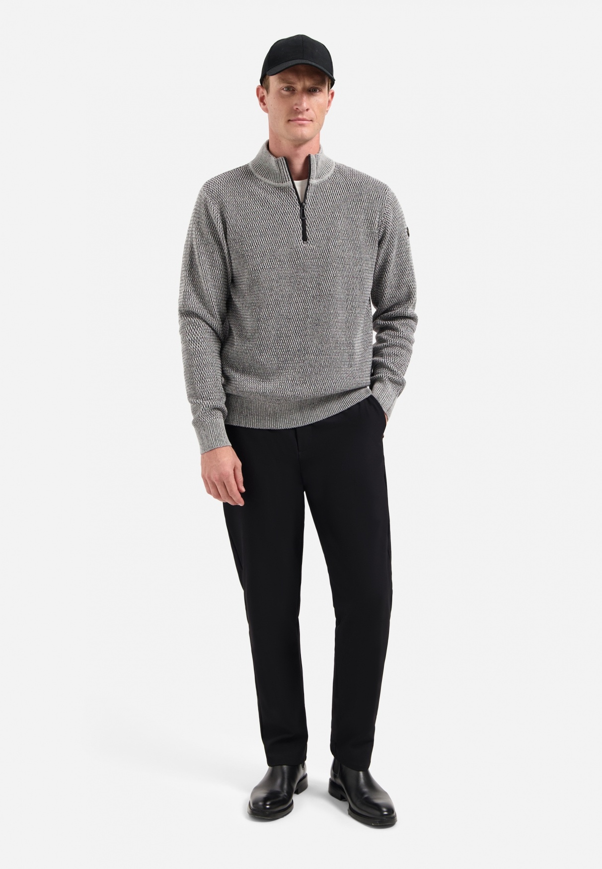 In de wereld van herenmode is de No Excess Pullover Half Zipper een symbool van verfijnde eenvoud en ongeëvenaarde kwaliteit. Deze grijze melange pullover, onderdeel van de nieuwste collectie, belichaamt de perfecte balans tussen casual comfort en stijlvolle elegantie. Of je nu een wandeling maakt in het park of een informele bijeenkomst bijwoont, deze trui is jouw ideale metgezel.