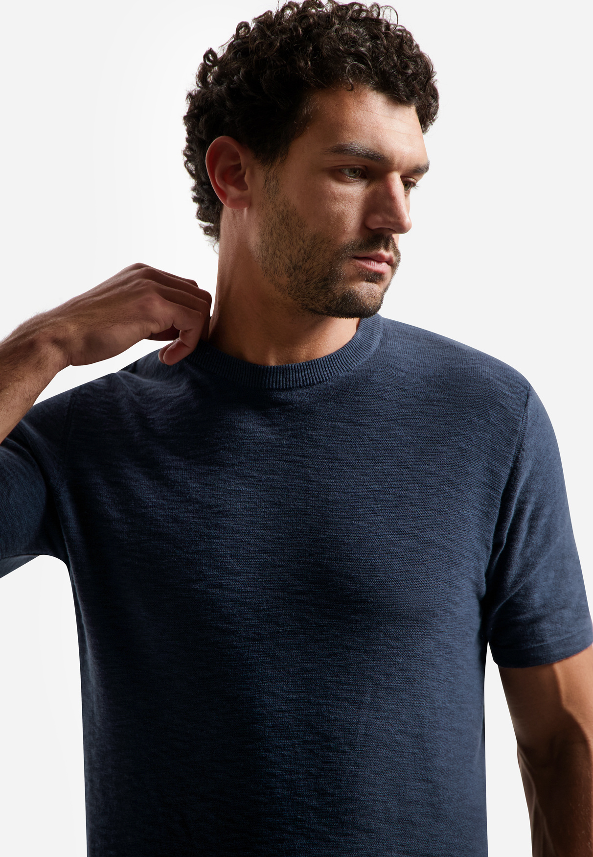 Stel je voor: een rustig weekend, een koffietentje met vrienden of een informele werkdag waarop je moeiteloos de juiste toon wilt zetten. Dit T-shirt voelt als dat vertrouwde kledingstuk dat je keer op keer grijpt omdat het altijd goed zit en je zelfverzekerd maakt. De subtiele uitstraling van de Navy kleur geeft een rustige, mannelijke uitstraling die zich moeiteloos laat combineren met jeans, chino of een licht colbert. Het draagt licht en vrij, en het is precies dat soort kledingstuk dat je stijl complementeert zonder te schreeuwen. Voor de man die waarde hecht aan een nette maar nonchalante look, biedt dit stuk een gevoel van kwaliteit en tijdloze eenvoud.