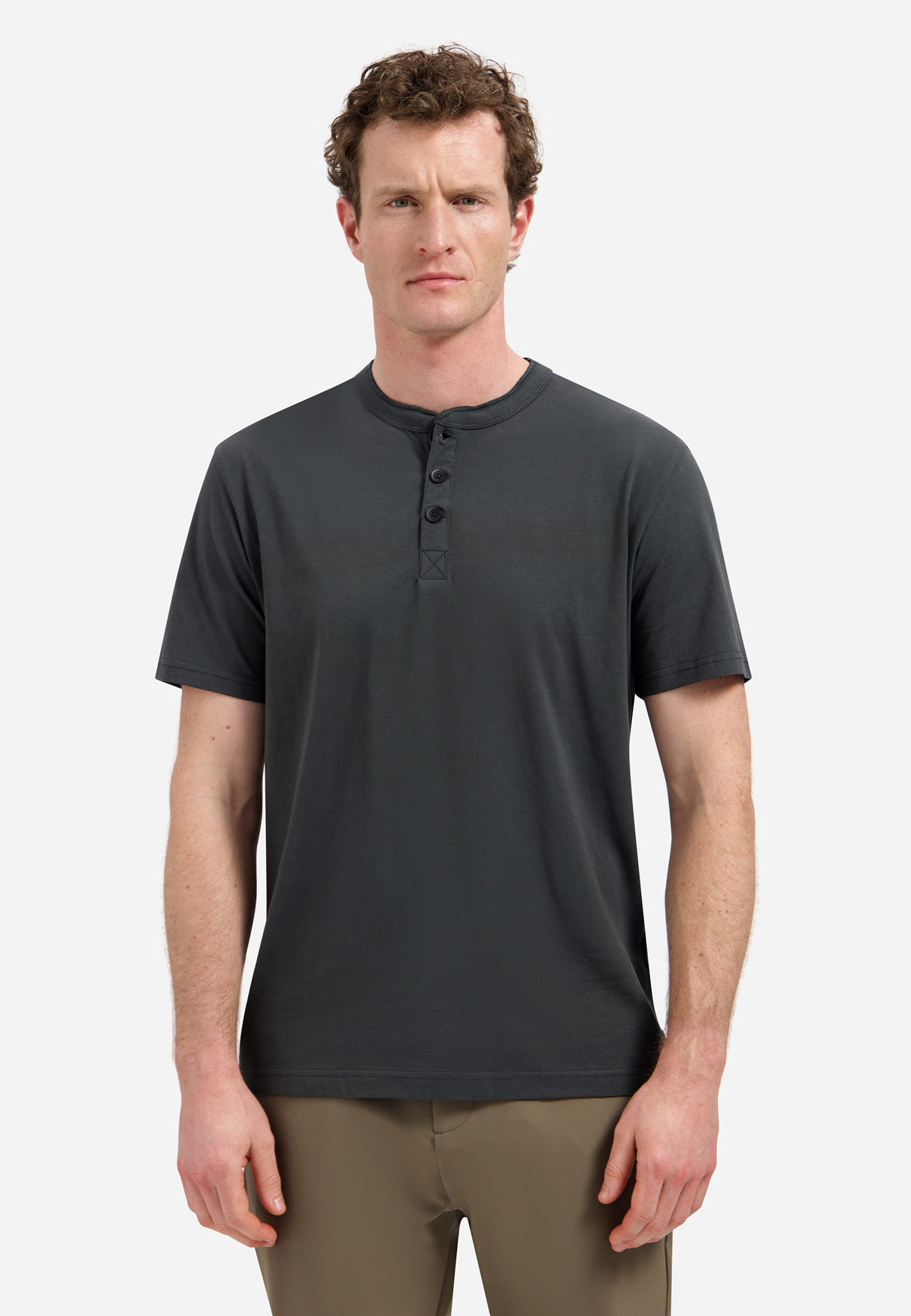 No Excess T-Shirt Granddad Half Button Melange Dark Steel (31340316 - 124)