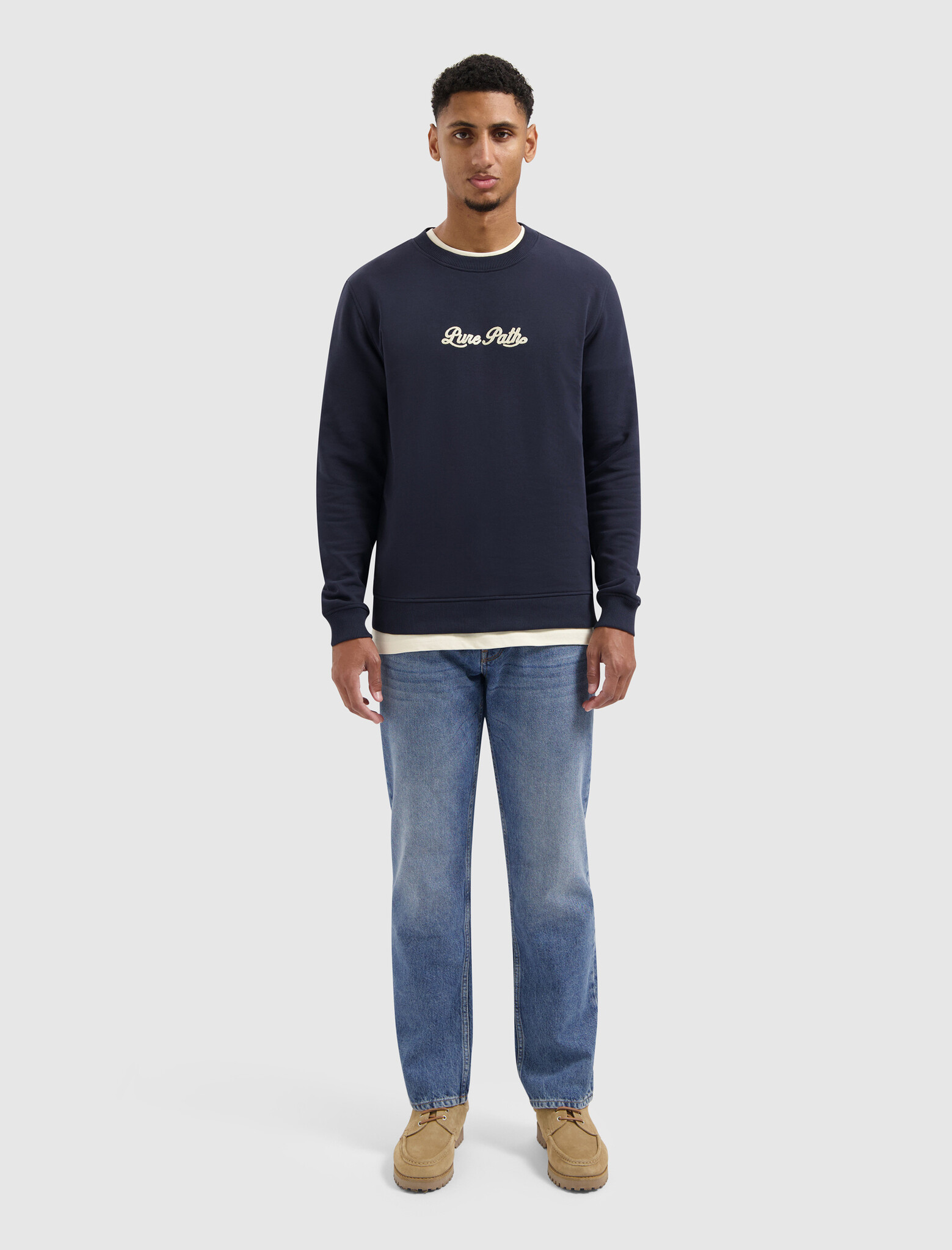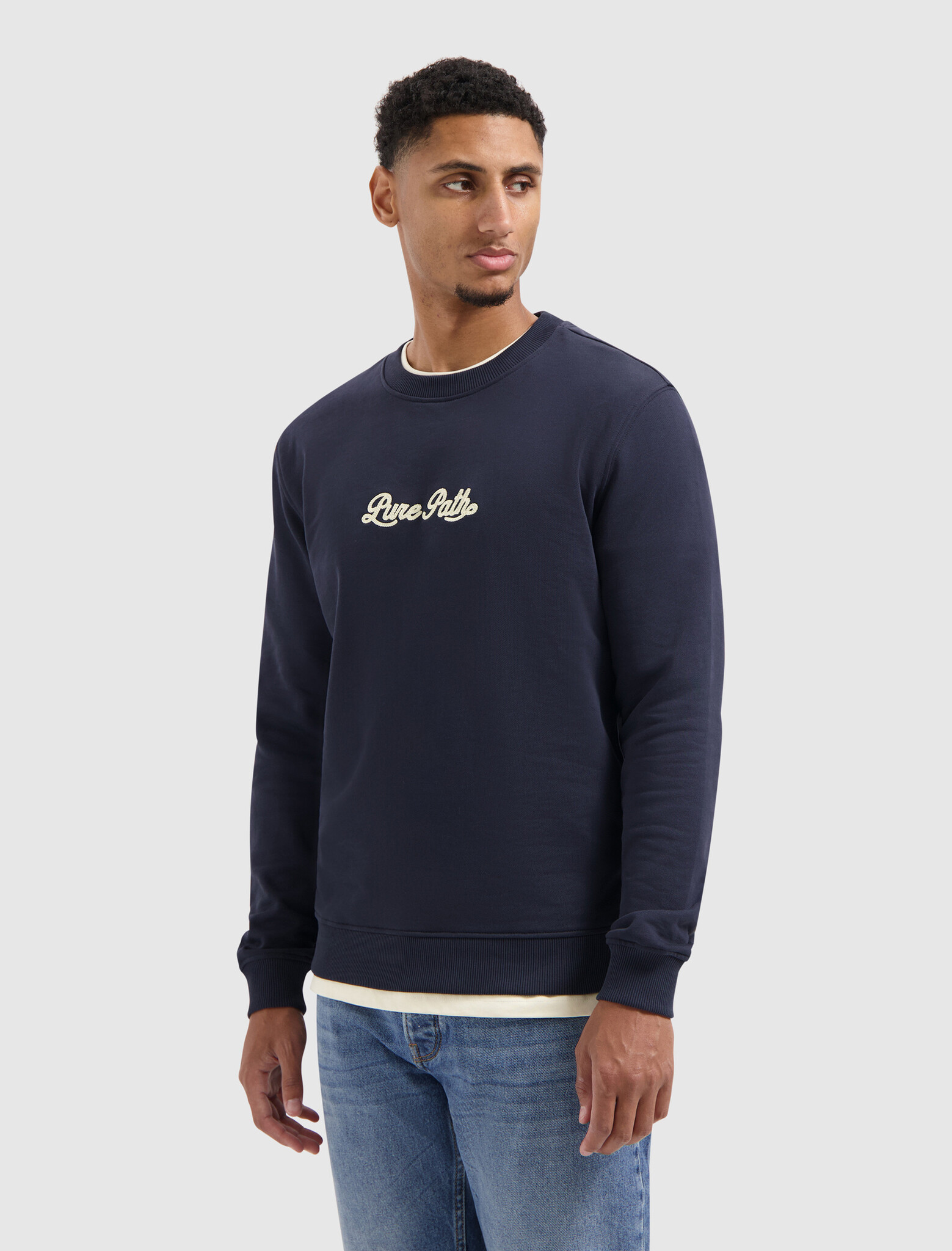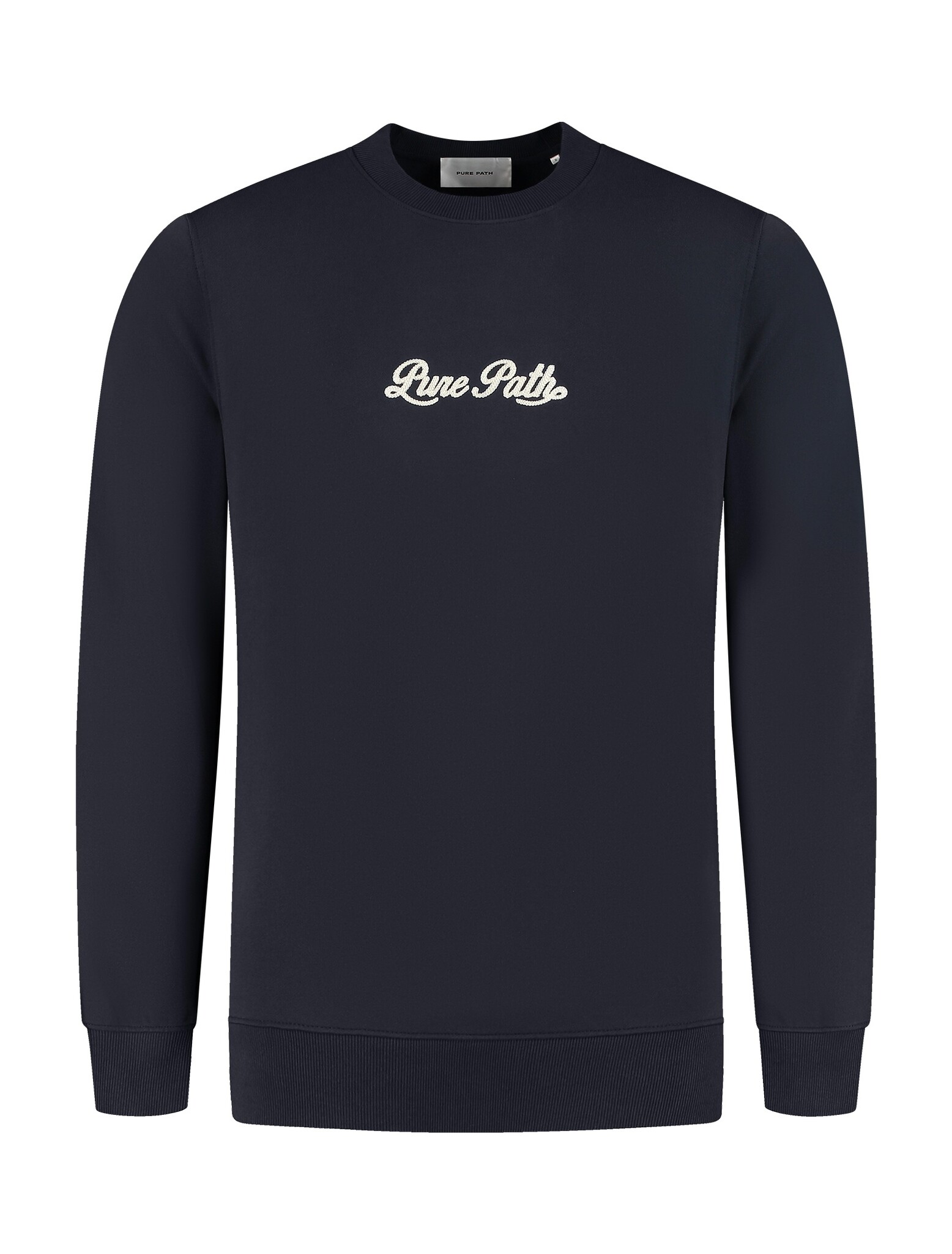 Ontdek de Pure Path Chain Stitch Sweater in Dark Navy. Deze stijlvolle en comfortabele trui is perfect voor elke gelegenheid. Voeg hem toe aan je garderobe en maak een statement!