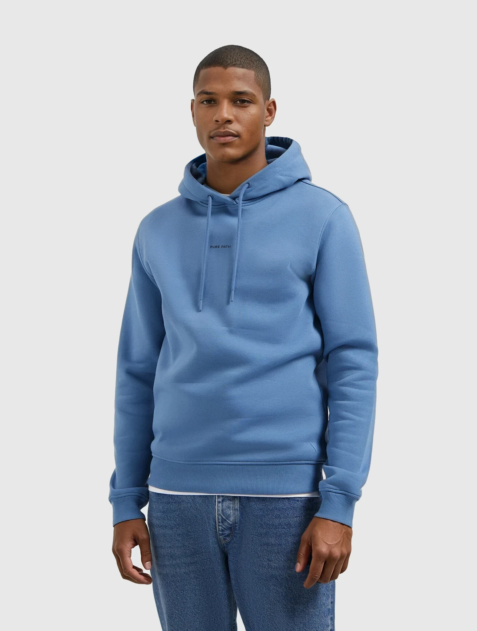 Ontdek de Essential Logo Hoodie Blue Grey van Pure Path. Stijlvol, comfortabel en veelzijdig. Perfect voor elke gelegenheid. Upgrade je garderobe en maak een statement!