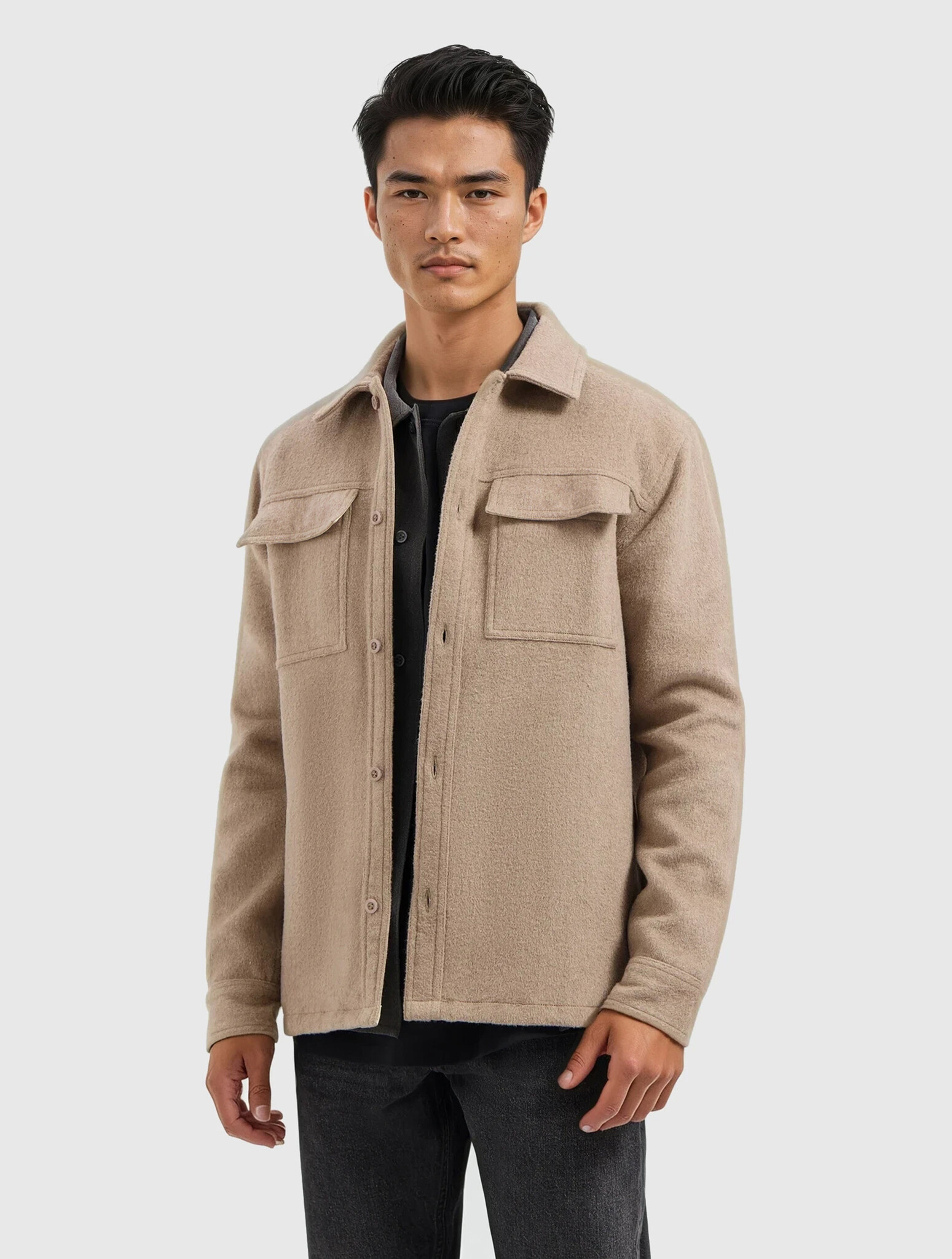 Ontdek de Tijdloze Stijl van de Pure Path Regular Fit Flannel Overshirts Taupe