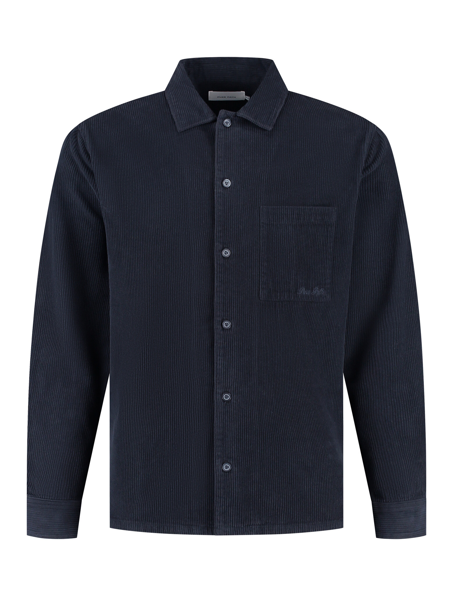Ontdek de Pure Path Regular Fit Longsleeve Corduroy Shirt in Dark Navy. Comfort en stijl komen samen in dit veelzijdige overhemd, perfect voor elke gelegenheid. Voeg het toe aan je garderobe!
