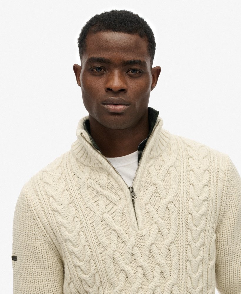 Superdry JACOB CABLE KNIT HALF ZIP Ecru (M6110698A - 39E)