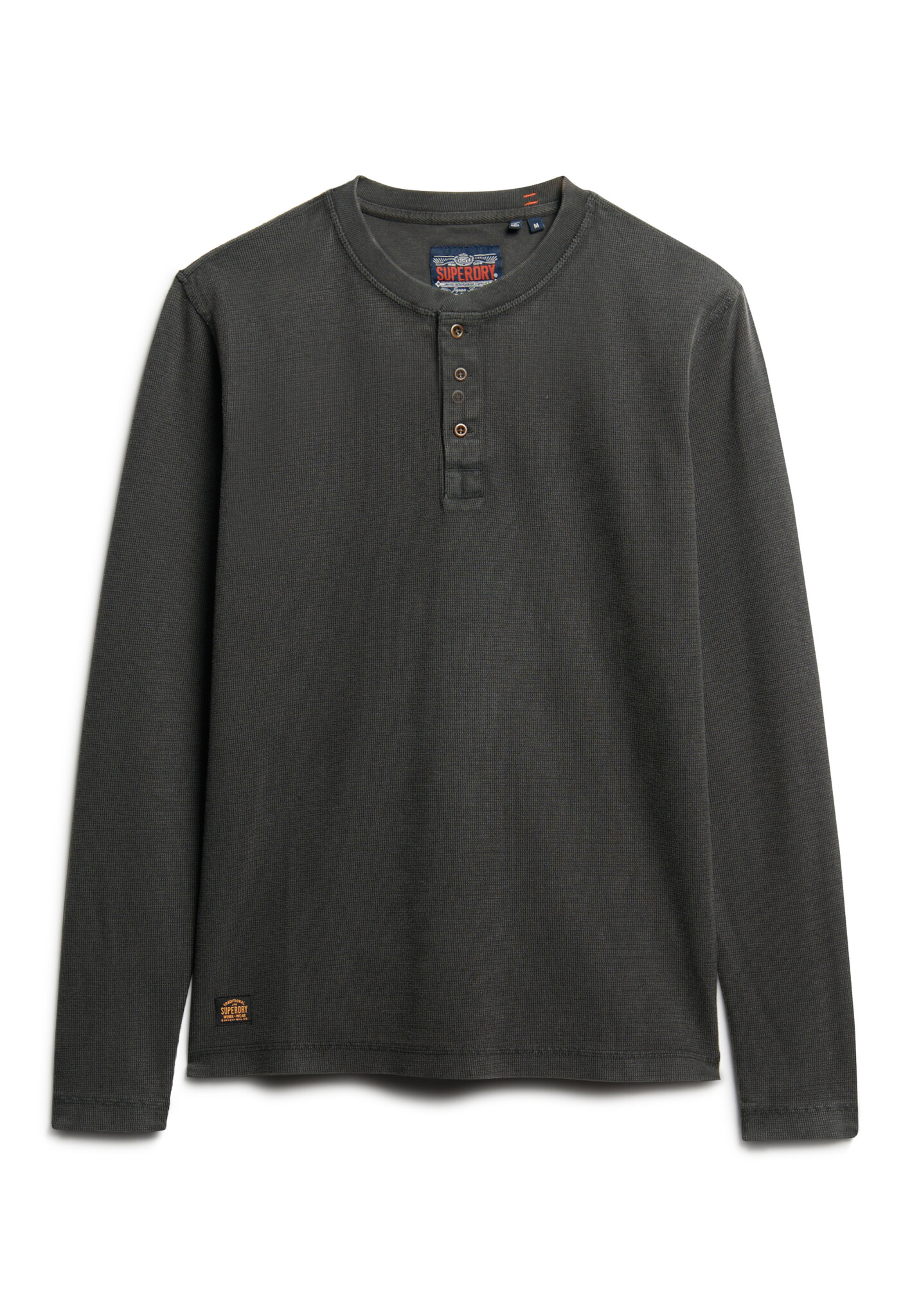 Superdry WAFFLE LONG SLEEVE HENLEY TOP Washed Black (M6010776A - AFB)