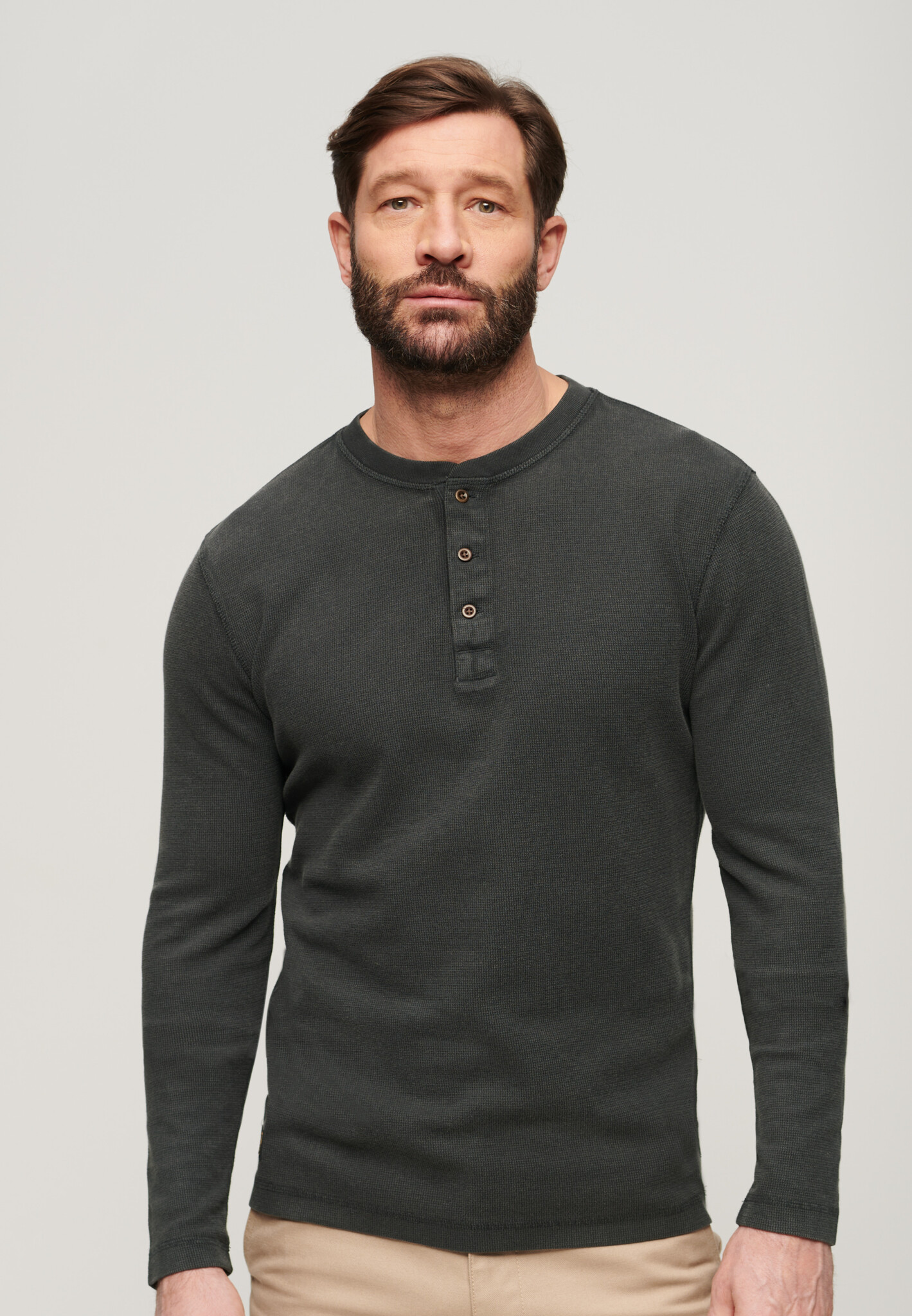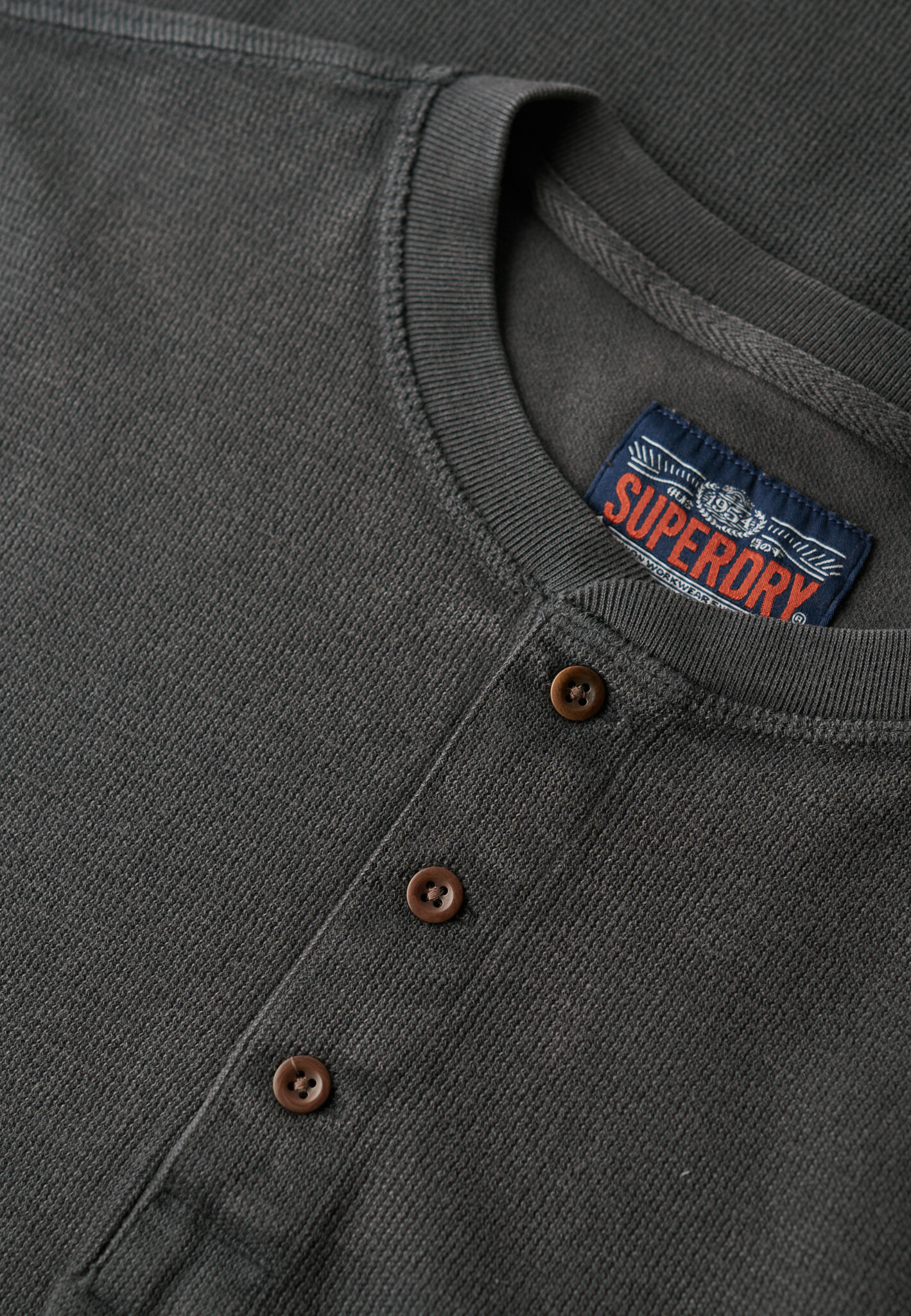 Ontdek de WAFFLE LONG SLEEVE HENLEY TOP van Superdry in Washed Black. Tijdloos, stijlvol en comfortabel. Perfect voor elke gelegenheid. Verhoog je garderobe met deze must-have!