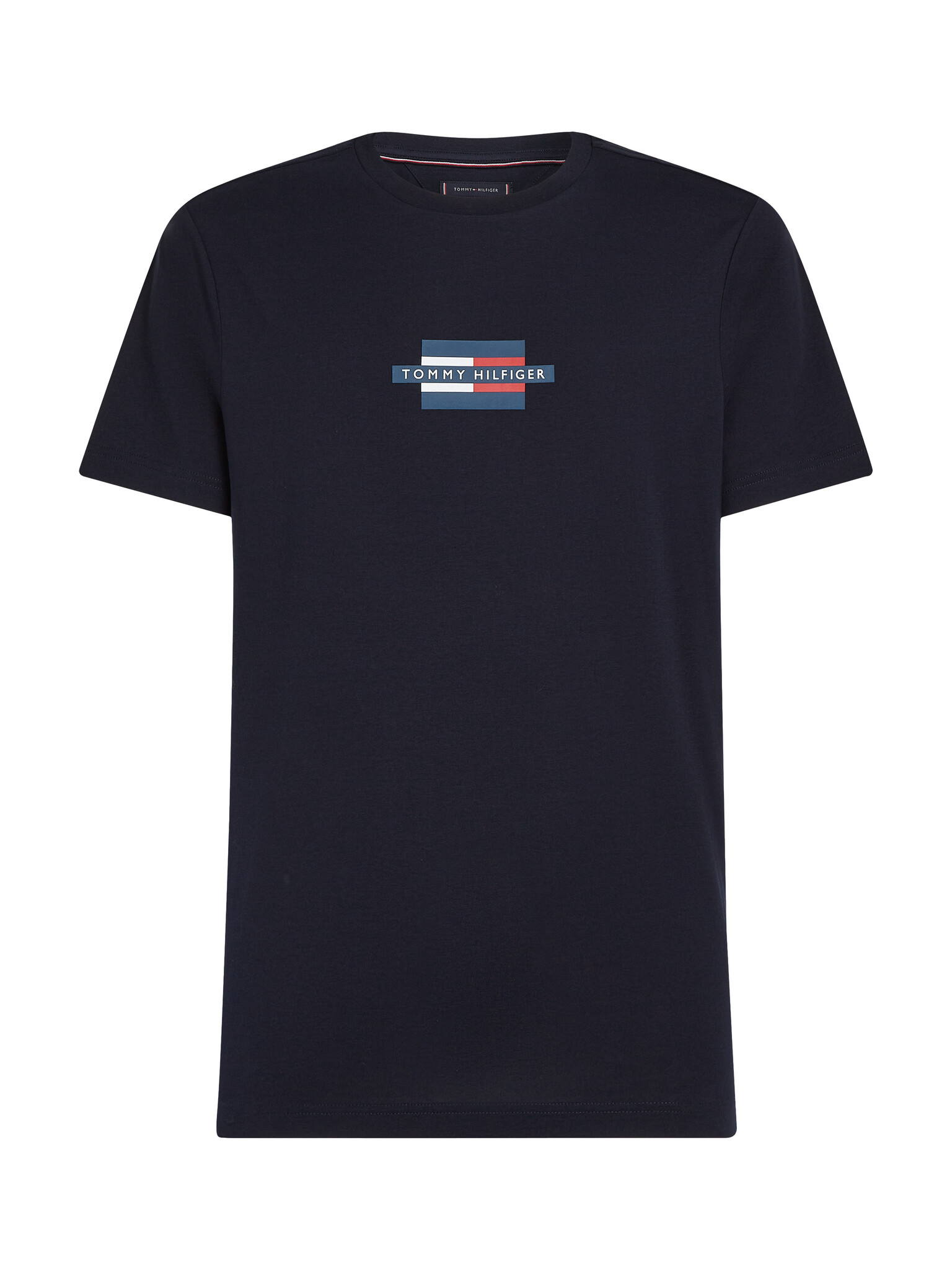 Ontdek de FLAG BOX TEE DESERT SKY van Tommy Hilfiger. Dit stijlvolle T-shirt met ronde hals en navy kleur is perfect voor elke gelegenheid. Upgrade je garderobe nu!